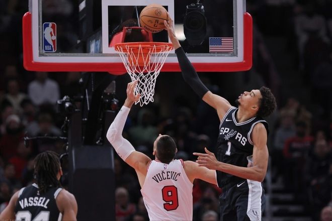 很多人说,如果文班亚马上赛季没有因为血栓问题早早退赛,他绝对能拿下DPOY,这一点其实是毋庸置疑的,文班亚马往禁区一站,对手完全没有冲击篮筐的欲望,进来就是送火锅,太吓人了。文班亚马目前在盖帽榜遥遥领先,场均4.8个,第二名的凯斯勒只有场均2.3个。另外,文班亚马的篮板也是联盟第一,得分也联盟第七,真的太恐怖了。